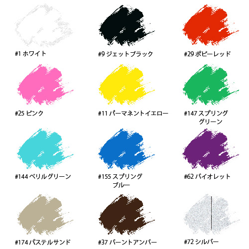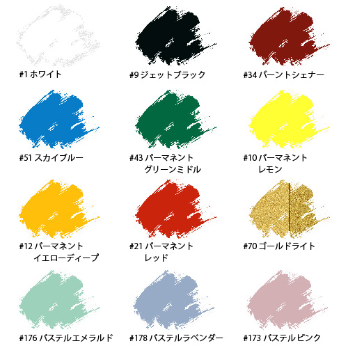 綺麗で鮮やかな色。マットで不透明に仕上がります。基本色に加え、中間色も増えて充実のラインナップ。