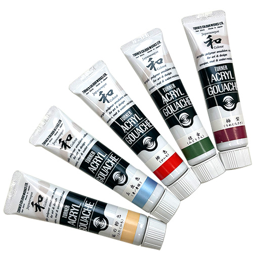 美しいツヤ消し(マット)の仕上がりが特徴の不透明アクリル絵具。被覆力に優れ、水に溶けます。乾くと強い耐水性になります。顔料ののびがよく、広い面も筆ムラなく塗れます。また、乾燥した濃い色の上にホワイトを重ねて塗っても、下の色はにじまず、何度でも重ね塗りができます。優れた接着力で紙はもちろん、布、石、金属などへの彩色も可能です。