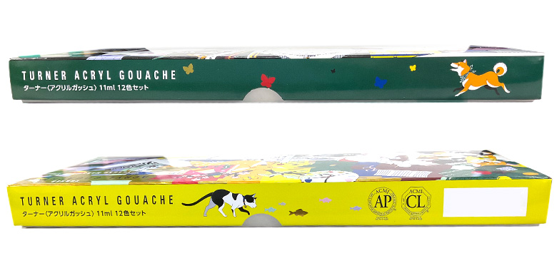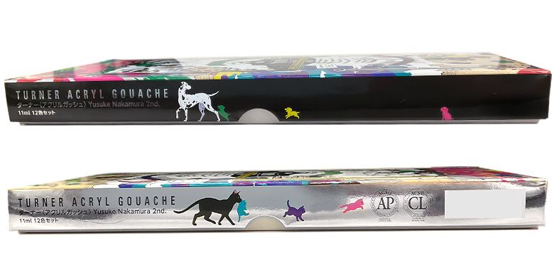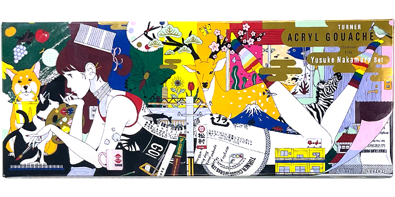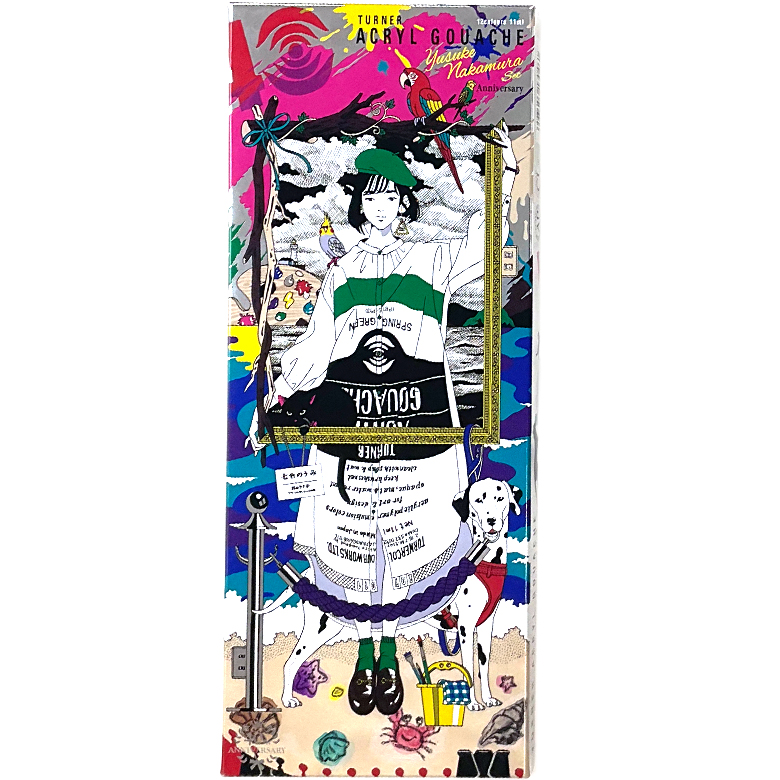 中村佑介セット2ndは、アクリルガッシュ発売40周年記念として、新たに描き下ろされたパッケージデザインとなります。