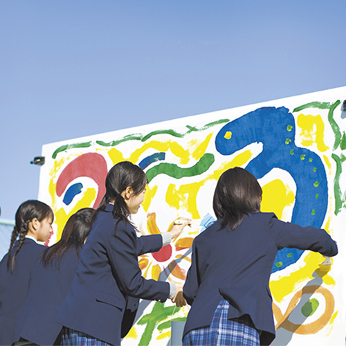 イベントカラーは、学校行事などの共同制作、立て看板・ポスター・ディスプレイ・舞台装飾・立体造形など、さまざまな用途に使える短期イベント用絵具です。カンタン、キレイに描け、水で薄めずに使えます。乾けば耐水性となるため、短期の屋外展示が可能で、学級旗やイベントパネルに最適です。