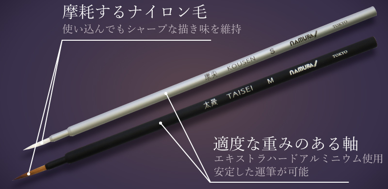 強く尖り続ける「康尖(こうせん)」と、しなやかに描く「太晟(たいせい)」。