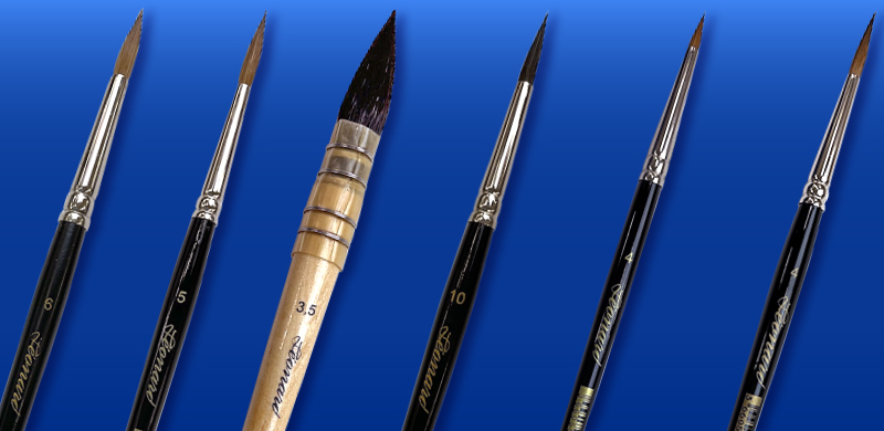 レオナルドの水彩筆は6種類あり、それぞれ穂先の形が違います。