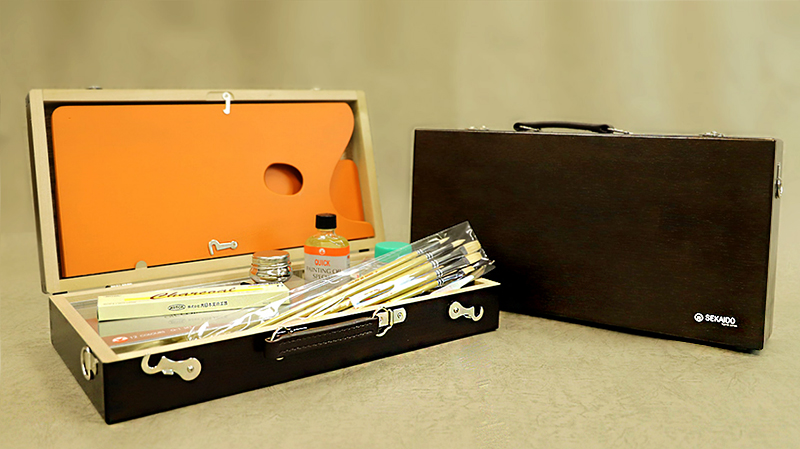 油絵の道具のそろえ方は、最初に最低限必要なものを一式そろえて、あとから使いたいアイテムを追加していくことが効率的です。たくさん画材をそろえる場合は、画箱だと入りきらないことがありますが、メインの道具箱として画箱を使うと便利です。世界堂の油彩画箱セットで油絵をはじめましょう!
