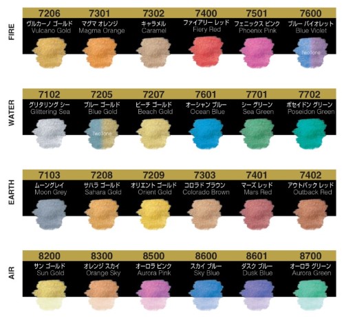 新たに登場した24色は、火(fire)・水(water)・地(earth)・風(air)の四大元素をテーマとして展開されており、今回の追加色が全て揃う24色セットも展開しています。