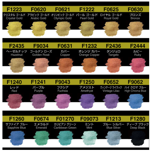 ファインテックは、特別に精製された天然のアラビアゴムと最高品質の真珠光沢・偏光顔料を使用して作られた、ドイツ製の固形絵具です。