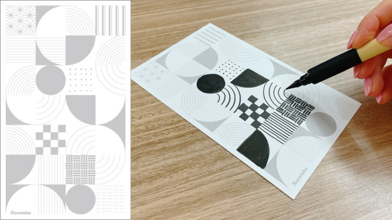 イラストがハードルが高ければ、最近人気の幾何学模様にチャレンジ!BIMOJI FUDE PEN Assorted setにはイラストに自信がない人でも楽しめるなぞり書き用下絵がついています!5種類のぺん先の違いが試しやすいデザインです!