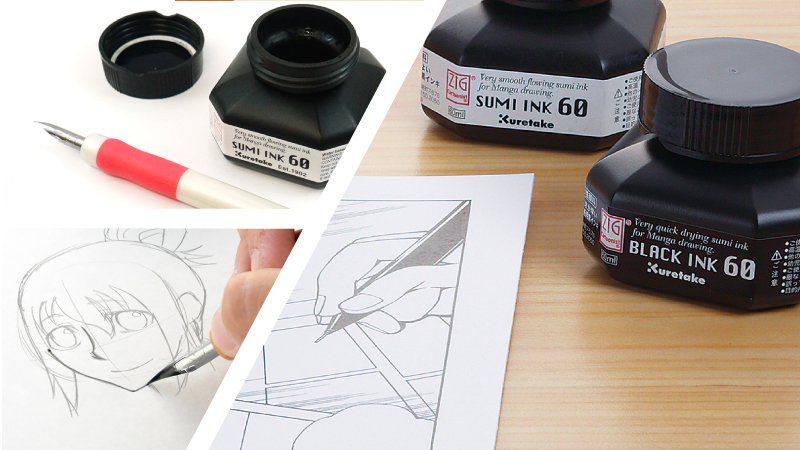 1) インクでイラストを描く ※ペンOK、鉛筆で下書きOK