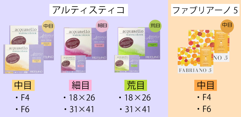 | 対象商品 | ファブリアーノ5…中目F4・F6 アルティスティコブロック…中目F4・F6、細目18×26・31×41、荒目18×26・31×41 |