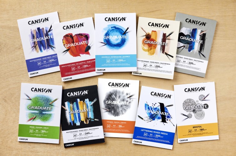 キャンソン グラジュエイトは、スケッチ、ドローイング、水彩、ミックスメディア等の各技法を楽しむために開発されたシリーズです。パッド製本なので、用紙を1枚ずつキレイにはがすことができます。また、A4・A5サイズなので、スキャンの取り込みもしやすいです。