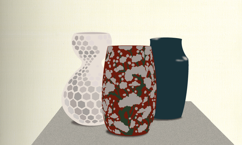 重畳(ちょうじょう)遠近法とは、距離が遠いものの前に距離が近いものを重ねて描くことによって、もの同士の前後感を表現する技法です。ほかの遠近法に比べるとシンプルでわかりやすい方法です。重なっている箇所は、手前の物をよりくっきりと描き、後ろのものはぼやけて描くとより遠近感が強調されます。