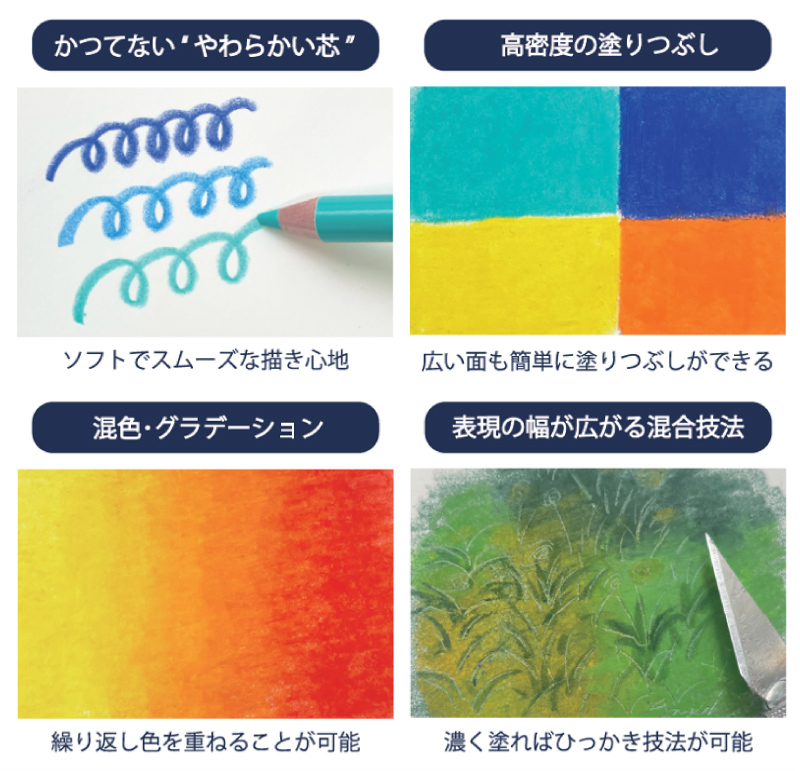 プロも愛用するかつてないやわらか芯の高品質色鉛筆。