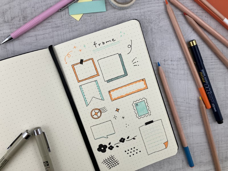 ドットが入っているので、文字や絵の配置をしっかりと揃えることができ、きれいに描けます。