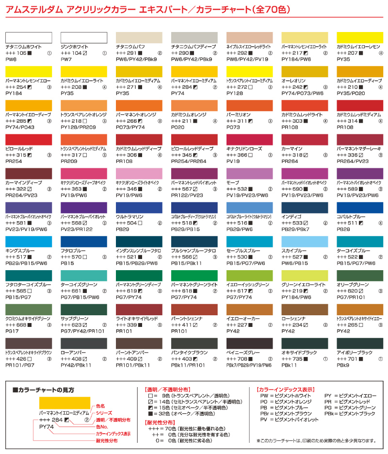 ・顔料濃度が非常に高く、鮮やかな発色が得られます。