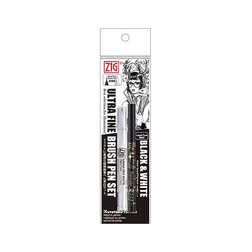 ・ZIG BLACK & WHITE 超極細筆ぺんセット 白筆ぺん & 愛ライナー
