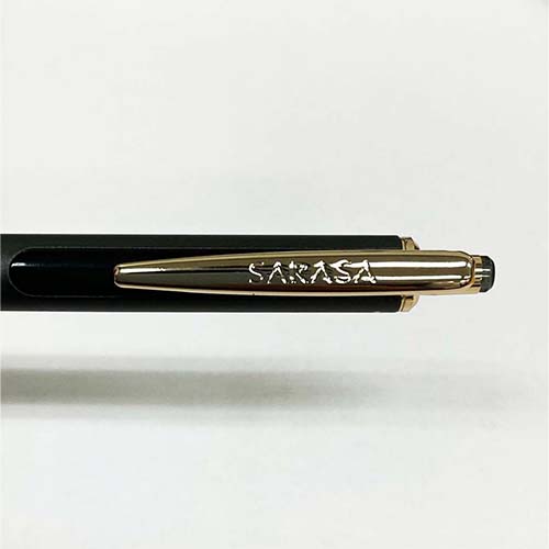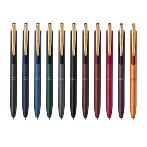 なめらかな書き味で人気のジェルインクボールペン「サラサ」。サラサグランドは、高級感のある大人の印象のサラサとしてデザインされました。軸は真鍮・塗装仕上げ、クリップとノックは金メッキ仕上げ。サラサのインクは、水性顔料のジェルインクで、さらさらとしたなめらかな書き味で耐水性にも優れています。インクの色は、万年筆のインクのようなビンテージカラー。落ち着いたシックな色合いです。(黒とブルーブラックインクは公式文書にも使用できます)