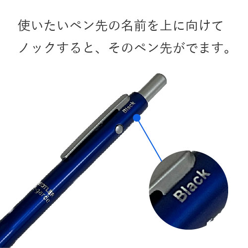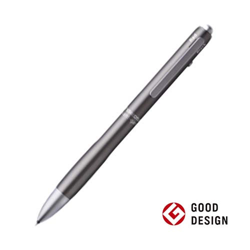 重さ18gの硬質アルミ軽合金製ボディ。黒・赤・青の油性ボールペン(Φ0.7mm)、0.5mmシャープペンシルの4機能を内蔵した多機能ペンです。使用するペン先の表記を上に向けて持った状態でノックすると、そのペン先がでてくる仕組みになっています。機能性を追及するドイツの製図用品メーカーならではのこだわりです。2005年度グッドデザイン賞受賞製品。
