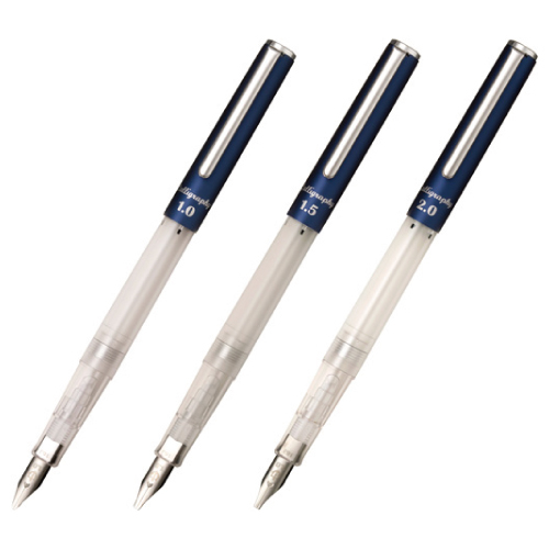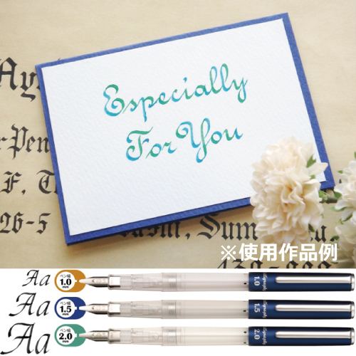 美しくカリグラフィーが書ける万年筆。カートリッジとコンバーター両用式で、線幅は1.0、1.5、2.0の3種類。セーラーのインクは色数が豊富なので、表現の幅がとてもひろがります。