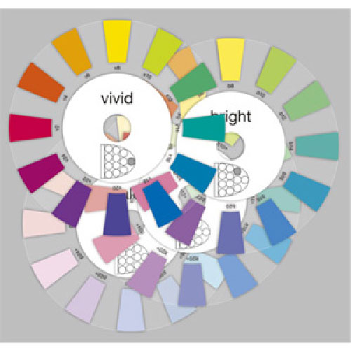 「PCCS(Practical Color Co-ordinate System:日本色研配色体系)」のカラートーン。トーンごとに12色の色相がペット板に印刷されているので、直感的にカラーコーディネートができます。色彩検定の勉強、洋服の配色を考える、ネイルアートのカラー・イメージメイキングなどにおすすめです。