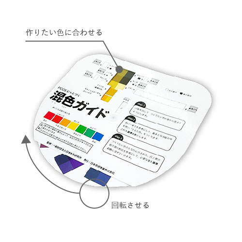 中間混色とは、複数の色が混ざって見えることによって、中間の色に見える混色方法です。中間混色には、 回転混色と並置混色の二種類があります。