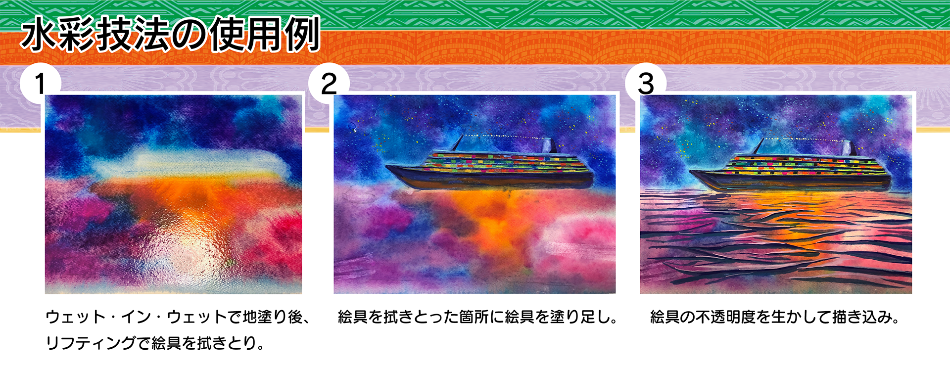 デザイナースカラーの特長④ 様々な水彩技法を楽しめる