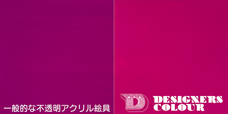 一般的な不透明アクリル絵具に比べて高い顔料濃度で製造されているデザイナースカラーは