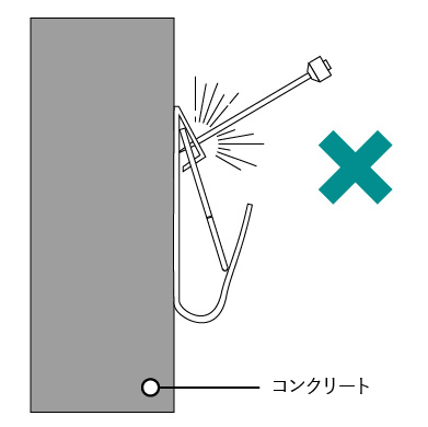 ステンレス セフティ Xフックは、コンクリートの壁には使用できないので注意しましょう。コンクリートの壁はとても固く、ピンがささりません。