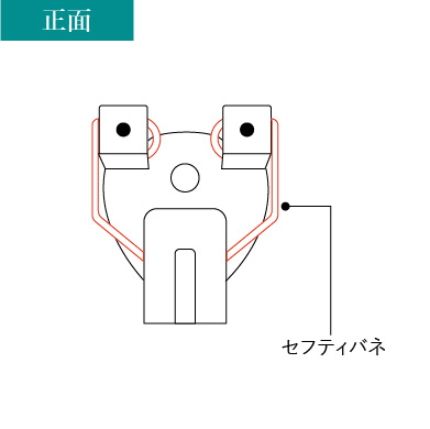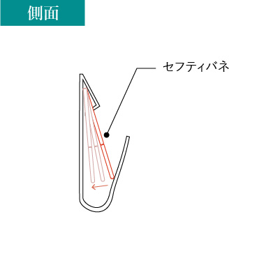 - セフティバネが落下を防ぐ