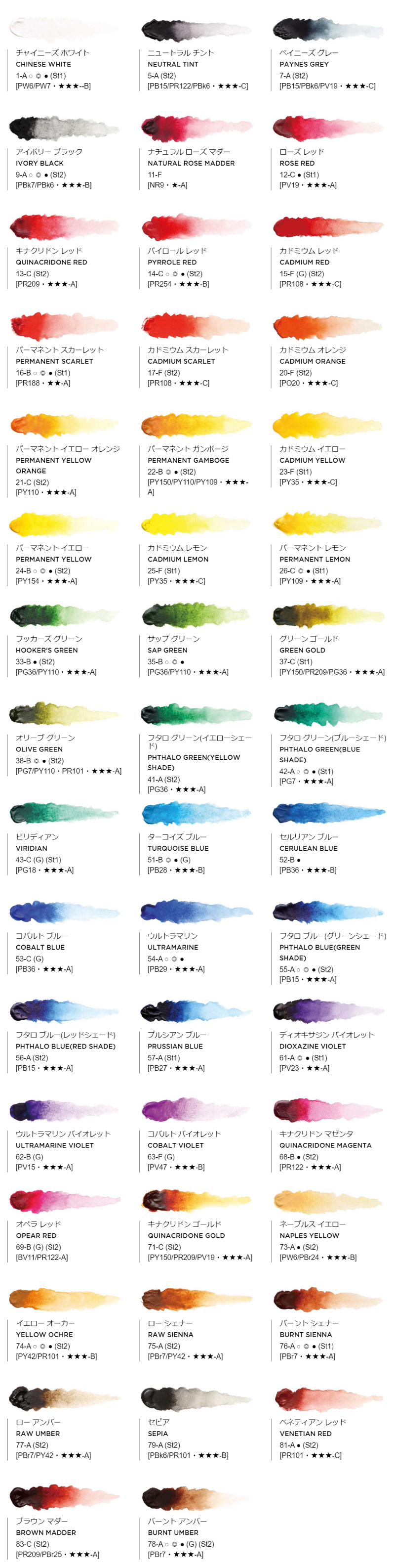 5mlチューブ全54色のうち、37色が単一顔料で作られています。