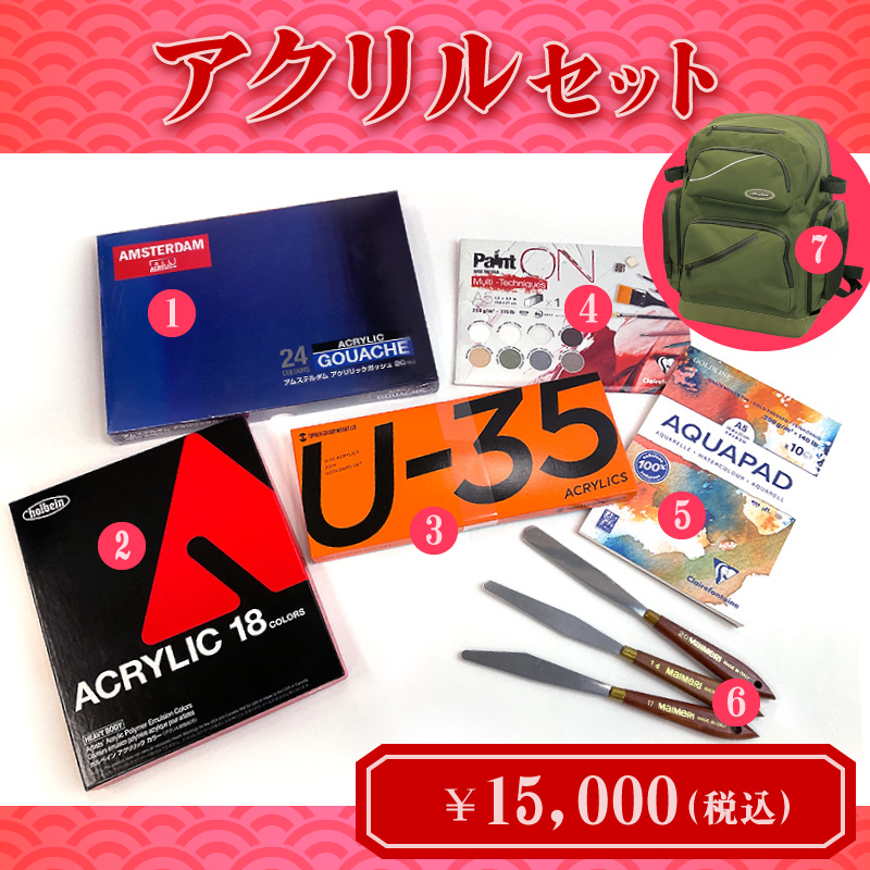 ・それぞれ特長を持ったアクリル絵具をすぐに試せる「アクリルセット」