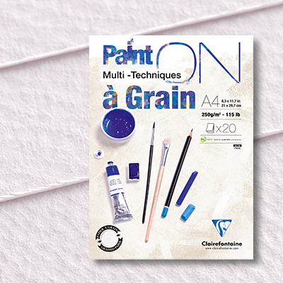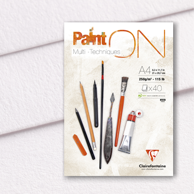 クレールフォンテーヌの画用紙は、あらゆる技法に適したミックスメディアペーパー「Paint’ON-ペイントオン-」、高品質ながらお求めやすい価格の水彩紙「AQUAPAD-アクアパッド-」、竹繊維を使った環境にやさしい水彩紙「バンブー水彩紙」など、様々な種類が揃っています。