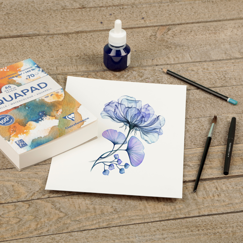 水分をたっぷり含ませてもよれにくく耐久性の高い紙面は、ぼかしやにじみ、重ね塗りといったあらゆる水彩技法に対応できます。