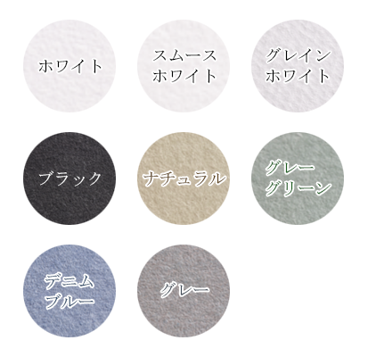 色展開は8種類。紙目の異なる3種類のホワイトや、ハイライトが際立つグレーイッシュ系の色など、豊富に取り揃えています。