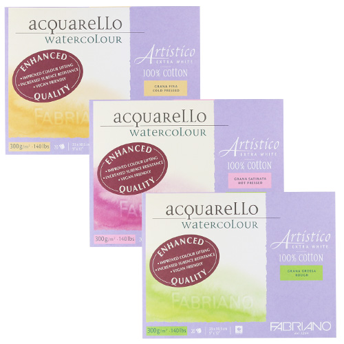 最高品質の水彩紙。モールドメイド製法によるコットン100%の強度と耐久性は、あらゆる技法に応えてくれます。また、理想的な保水性による絵具のにじみやぼかしがしやすく、純白の紙は絵具の美しい発色を最大限に生かしてくれます。各種水性絵具やインク、鉛筆、ドローイングなどに最適です。