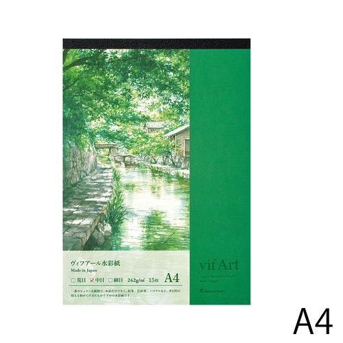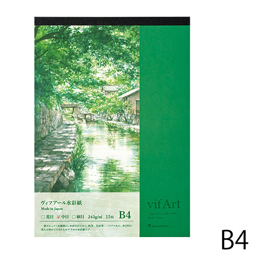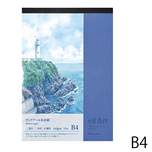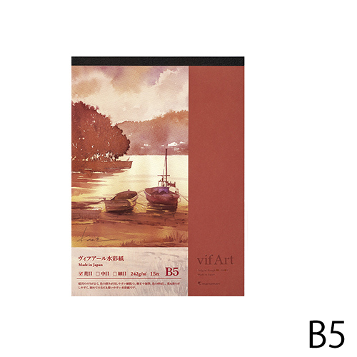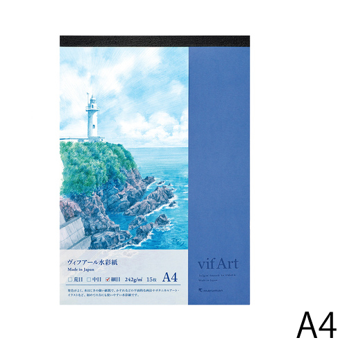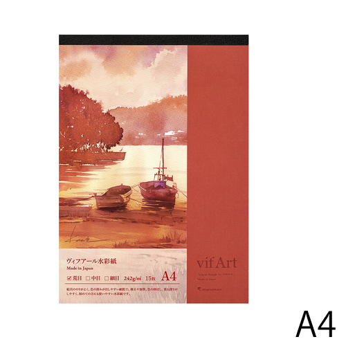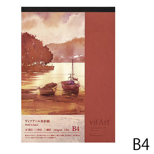ヴィフアール水彩紙をデザインサイズ(B4・B5・A4)の天糊パッド仕様にしました。描いた作品はそのまま簡単に取り外す事ができます。