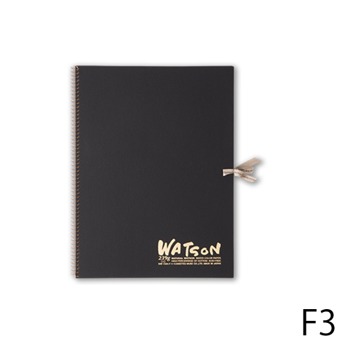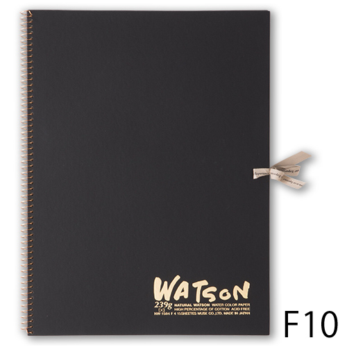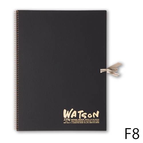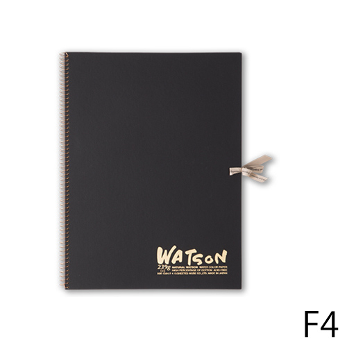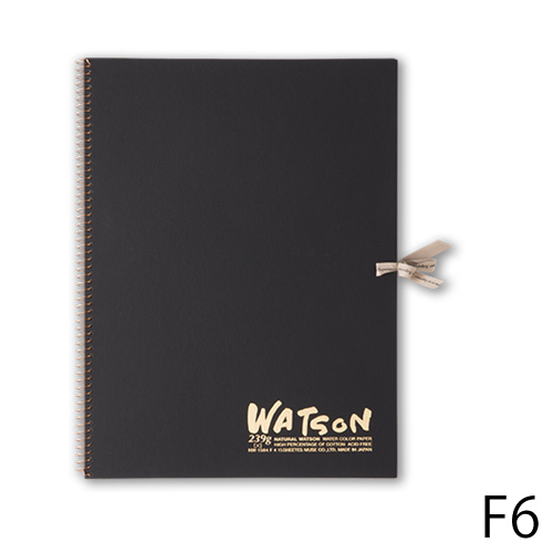 ワトソン紙特厚口(239g)を使いやすい本型のスパイラル綴じにしました。写生や旅行用スケッチブックとして最適です。従来の寸法を見直し、ホワイトワトソンブックと同じ寸法にすることにより、整理しやすくなりました。ワトソン紙は、落ち着いたナチュラルホワイト色で、中目の肌を持つ最高級水彩紙です。強靭な表面は消しゴムにも強く、水彩画、デッサン、スケッチ、パースに最適です。絵具や、チャコール、パステルののりがよく、特に水彩絵具の発色が良い紙です。