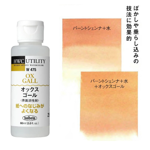・水彩絵具に混ぜるか、水で薄めて事前に紙に塗布すると絵具の紙への定着が良くなります。