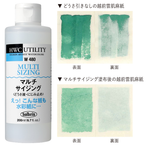 ・水で薄めて紙に塗布することで水彩絵具の吸い込みを抑え、にじみにくくなります。
