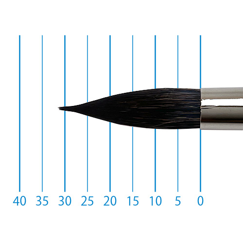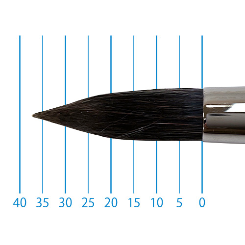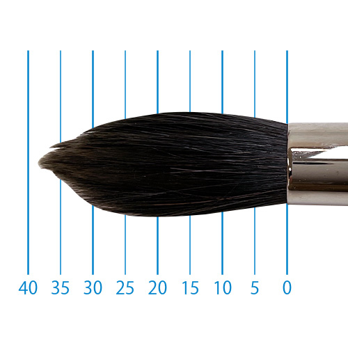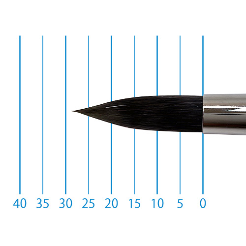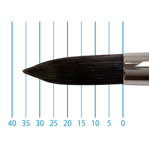 良質のリス毛に特殊処理されたリセーブル毛をプラスすることで絵具の含みが良く、ソフトな描き味を実現。たっぷりと量感のある筆でストロークの強弱で表現の幅も広がります。