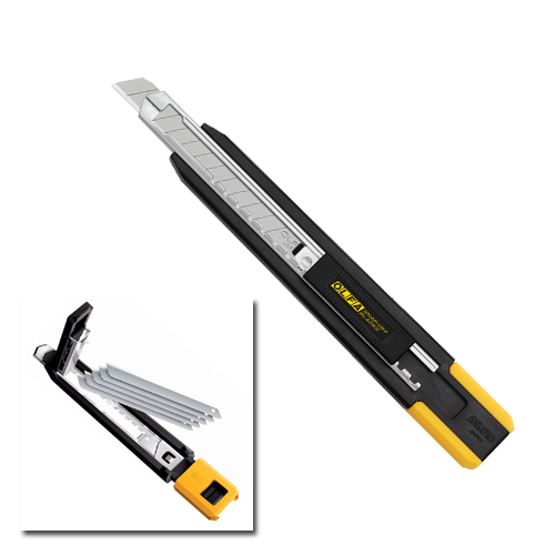 ●オルファ独自の裏から替刃を本体に内臓できる連発式の小型カッターナイフです。