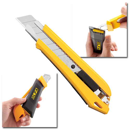 ●大型カッターナイフの決定版。紙から薄手のベニヤ版まで切ることができる万能タイプ。