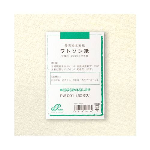 木綿繊維を主体とした表面は強靭で特に水彩絵具は素晴らしい発色をします。