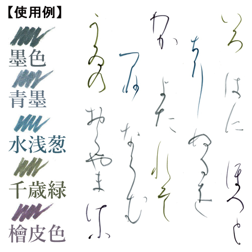 穂の太さ2mm径、極細で繊細なタッチの毛筆ペン。穂先は弾力に富んだ人造毛(特殊せんい)を使い、一本一本手づくりで丹念に造筆しております。耐光性・耐水性に優れた「水性顔料インク」を使用しており、乾くと水に流れず色褪せしません。深みのある日本の伝統色にこだわりました。