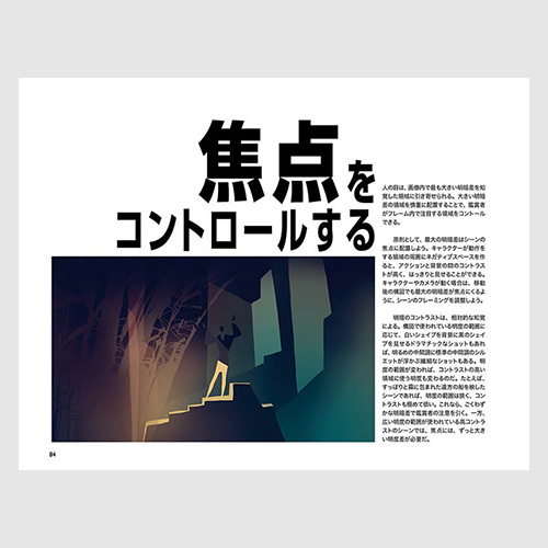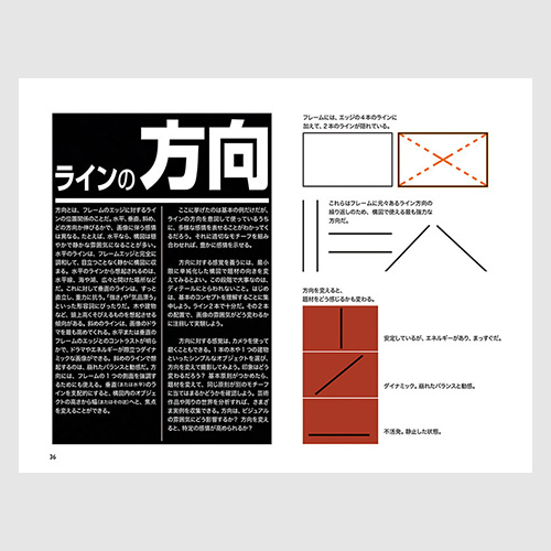 映画のビジュアルを構成する要素である「ライン」「シェイプ」「明度」「色」「光」「カメラ」を1つずつ順に取り上げて解説します。シンプルな要素に絞り込み、観点を1つずつかみ砕くことで、世界を見る目が養われます。シンプルな原則をあてはめ、画面をデザインしてストーリーを伝えましょう。