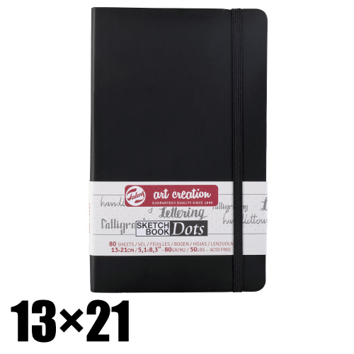 アートクリエーションスケッチブックから、5mm幅のドットが入ったブックが登場しました。手帳や日記、作品集など様々な使い方ができます。ページが奥までしっかり開くのでストレスなく制作に集中できます。汎用性の高い細目の中性紙を使用しており、水彩・ペン・マーカー・パステル・色鉛筆など様々な画材に使用できます。