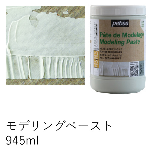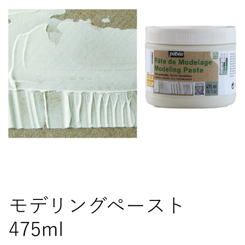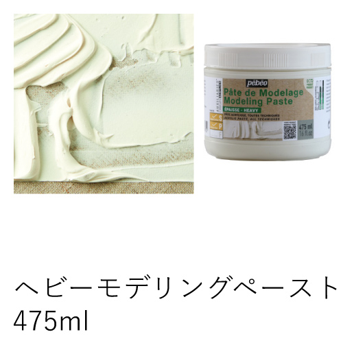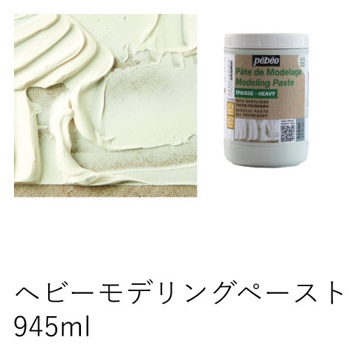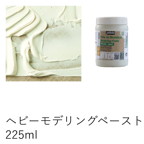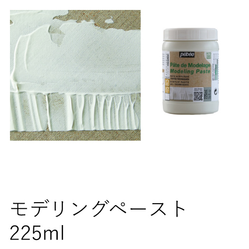 モデリングペーストに比べ、より厚みのあるレリーフを作ることができます。単独での使用やアクリル絵具と混ぜて使用できます。乾燥は、ひび割れすることもなく、ボリュームも保つくことが出来ます。