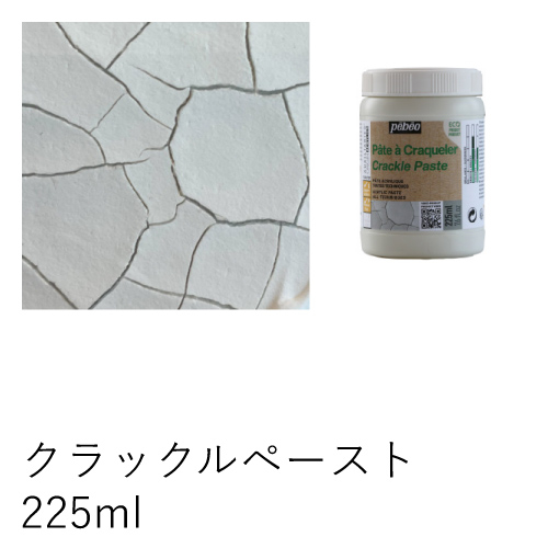 塗膜がひび割れを起こし、エイジングしたような仕上がりが得られます。1.メディウム単体で厚塗りする(最低3mm)またはメディウムとアクリル絵具(最大20%まで)の混合液を塗布する。