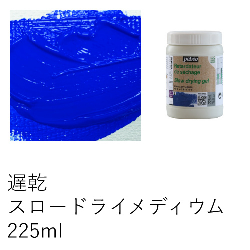 アクリル絵具と混ぜることにより、乾燥時間を遅らせることが出来るメディウムです。画面上での絵具の混色がしやすく、グラデーションにも適しています。