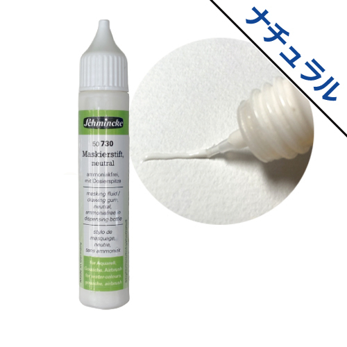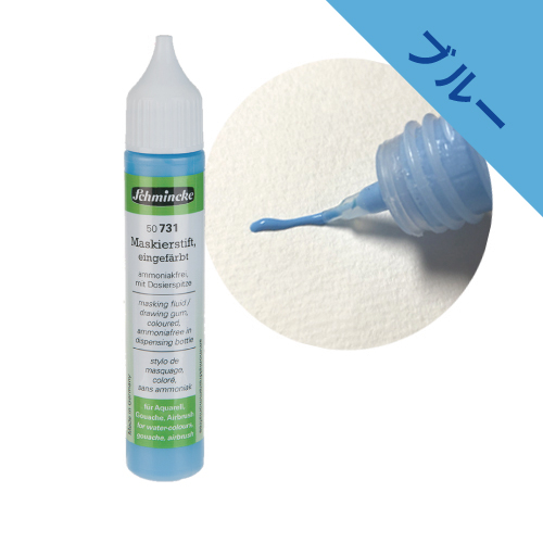人気のカラータイプ。インクに色が付いているので白抜きする部分が見やすく、剥がすときに便利です。ブルーと比べると風景画向けの色になります。筆を使用してマスキングするため、より細密な白抜きに適しています。ペンタイプと成分は変わりません。