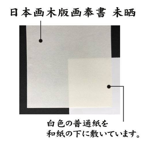 自然物を漉いた和紙の為、一枚毎に表面の色合いや画材のにじみ具合などに多少の差異は生じます。