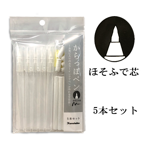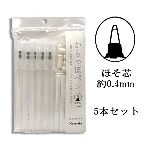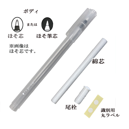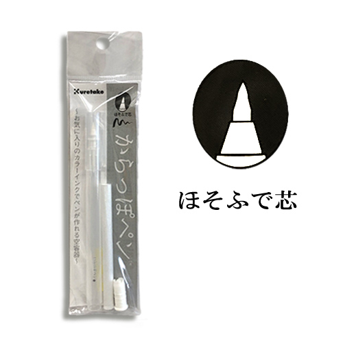 好きな色のインクを中に入れて、オリジナルのペンを作ることが出来る容器です。ほそ芯とほそふで芯の2タイプがございます。